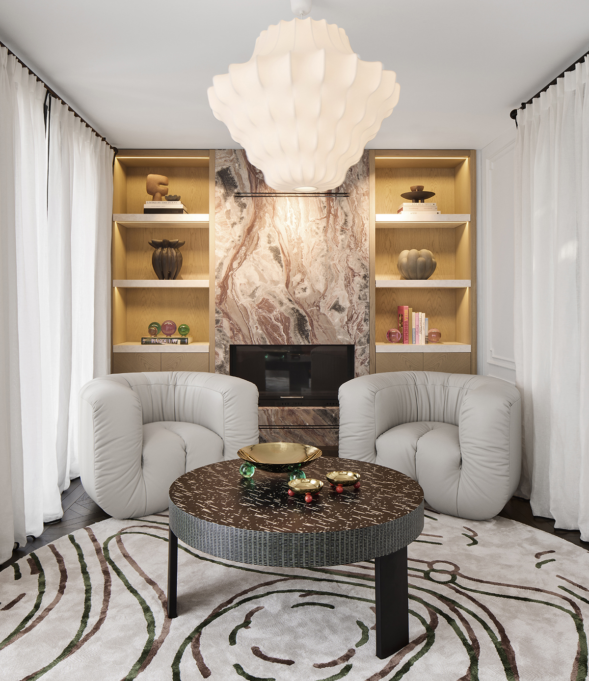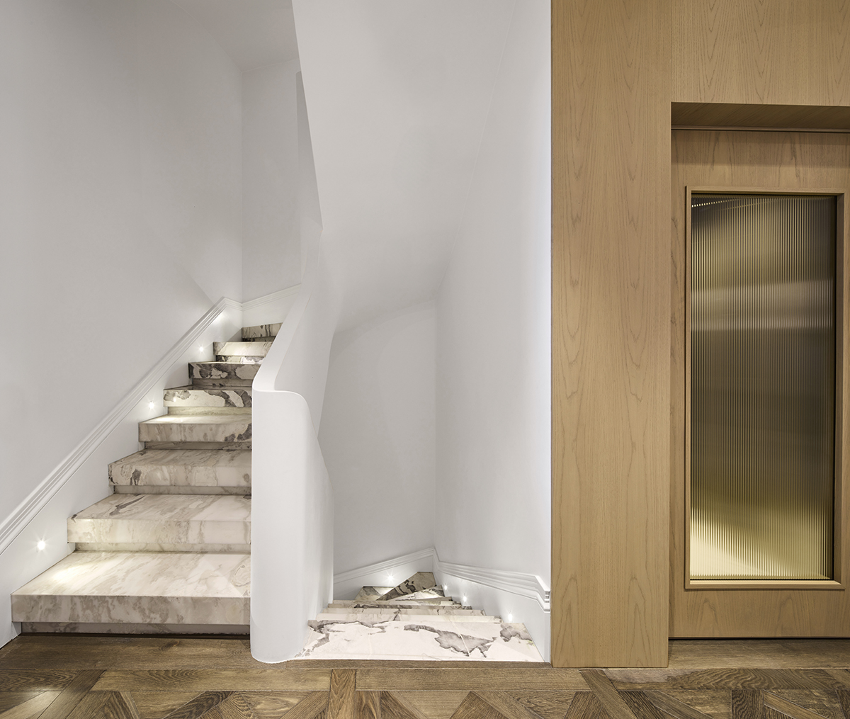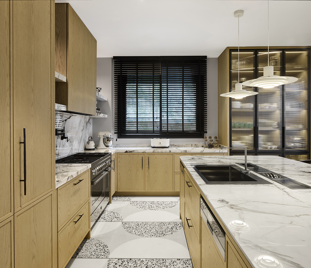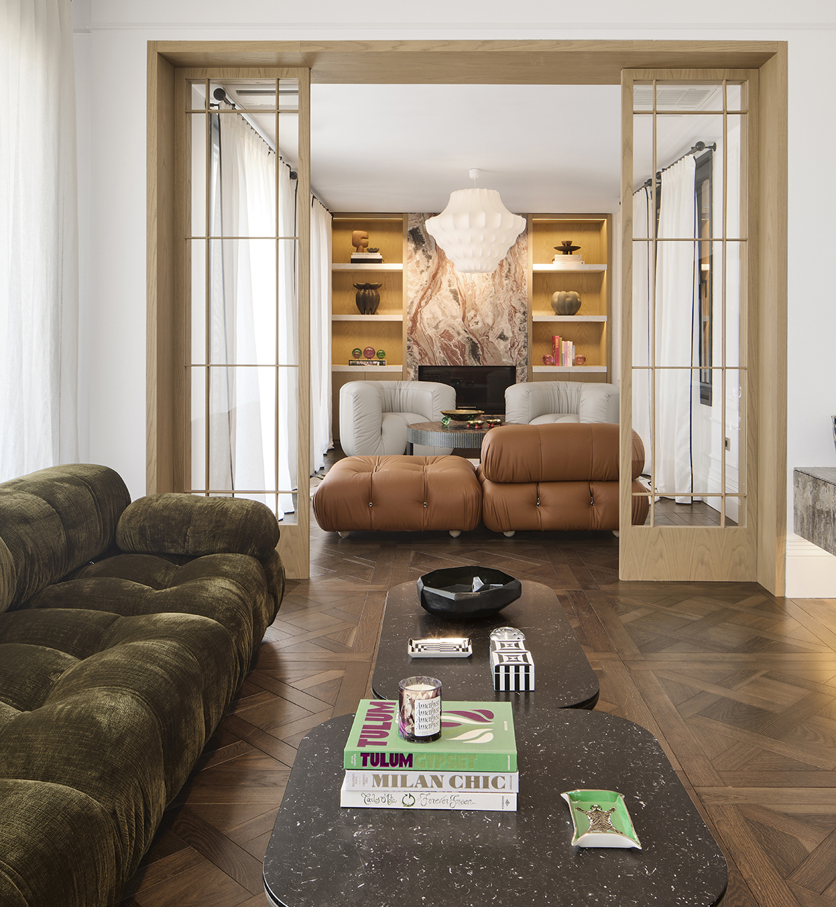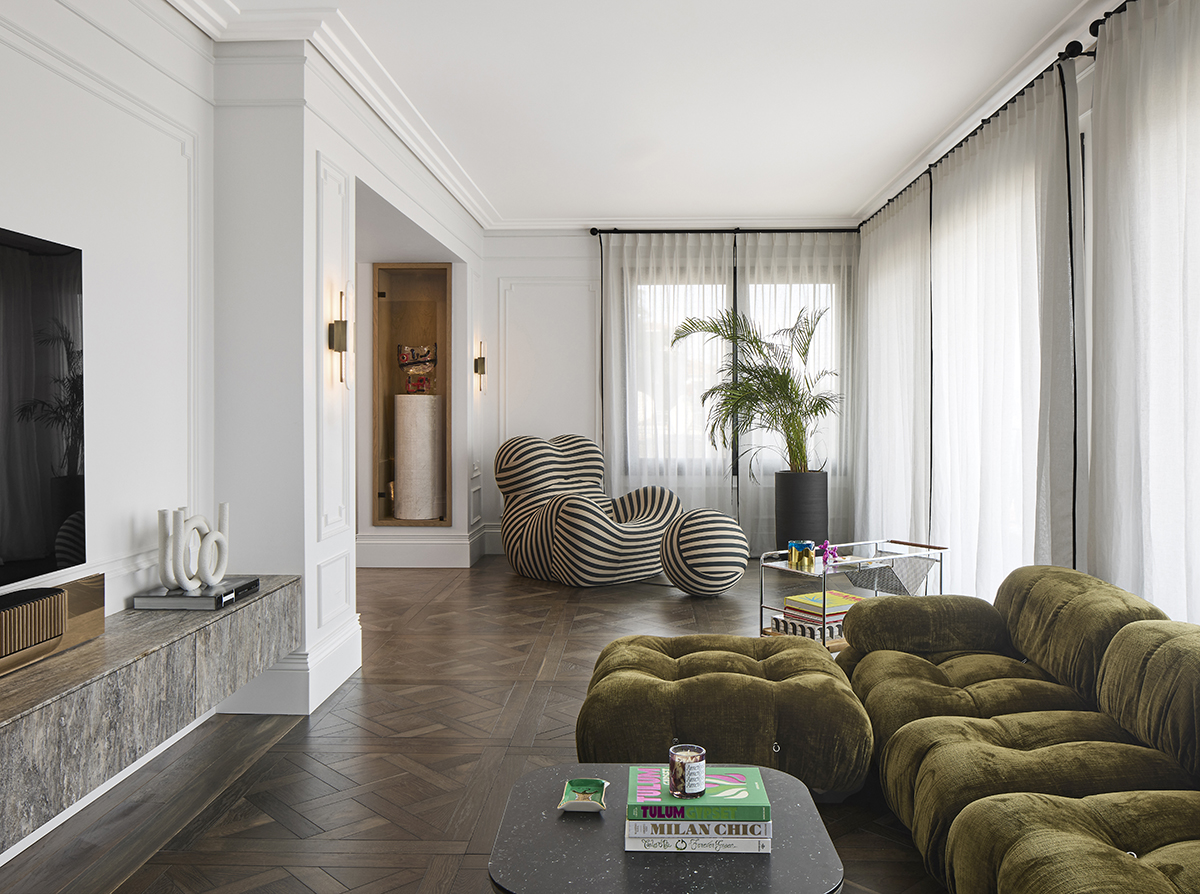 Layered lighting, custom made furniture, and carefully selected materials ensure both functionality and visual continuity throughout the home.
