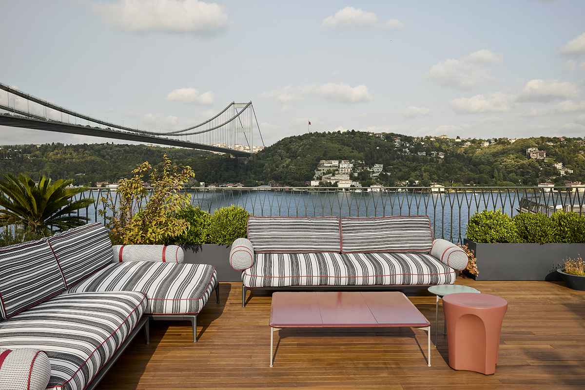 5 acre plot, the four-story mansion offers 670 m² of interior space and 200 m² of terrace areas, surrounded by a generous garden.