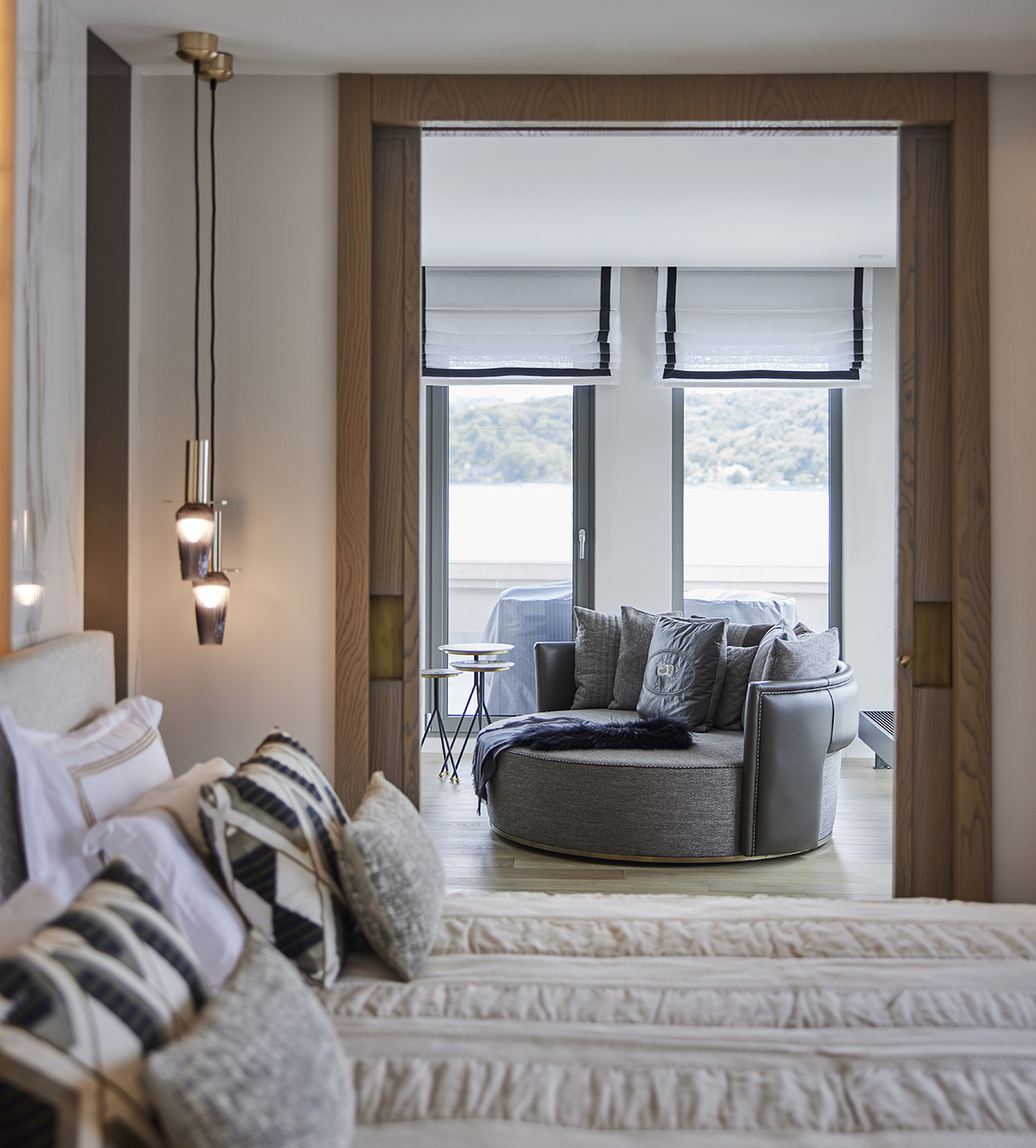 Part of the terrace was enclosed to create a winter garden with a fireplace, allowing the Bosphorus view to be enjoyed year round in a warm and intimate setting.