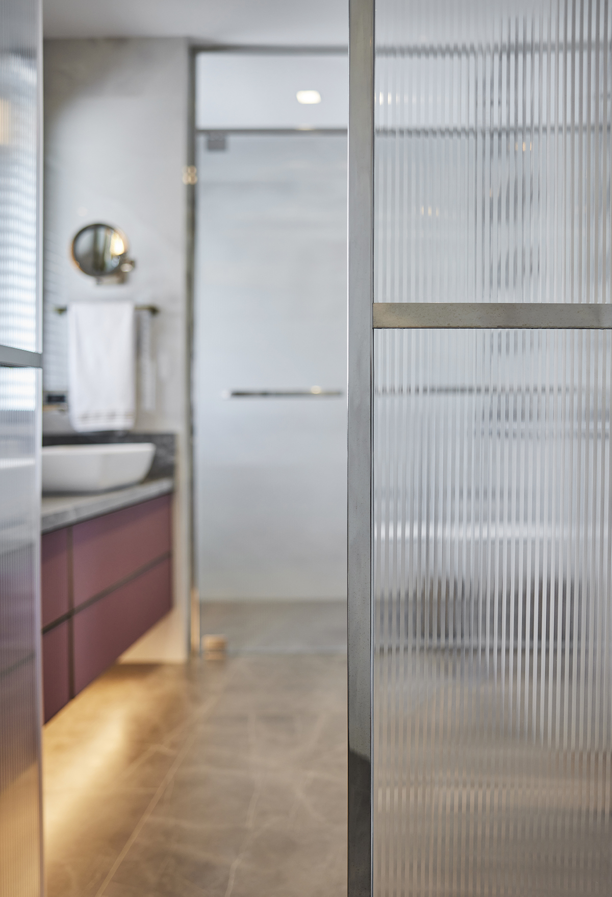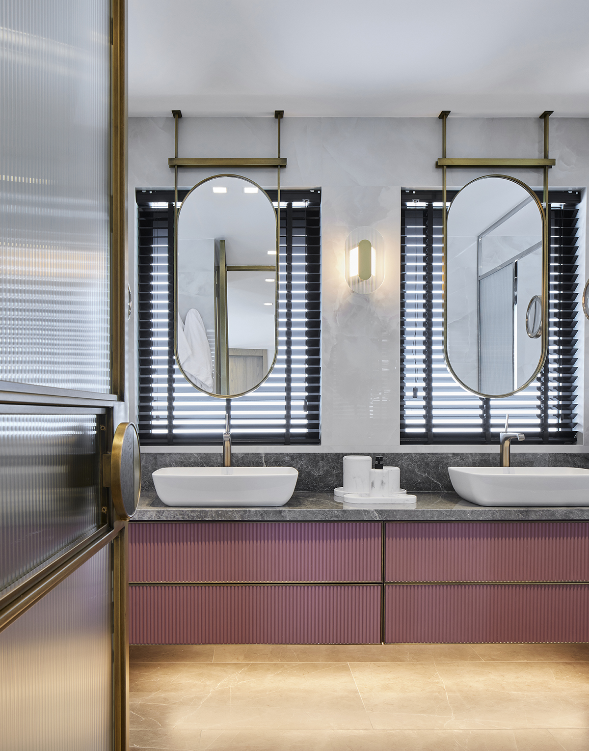 A sense of openness was achieved through the use of bronze framed transparent partitions, mirrored surfaces, and light-toned walls and flooring.