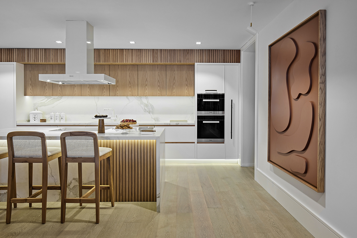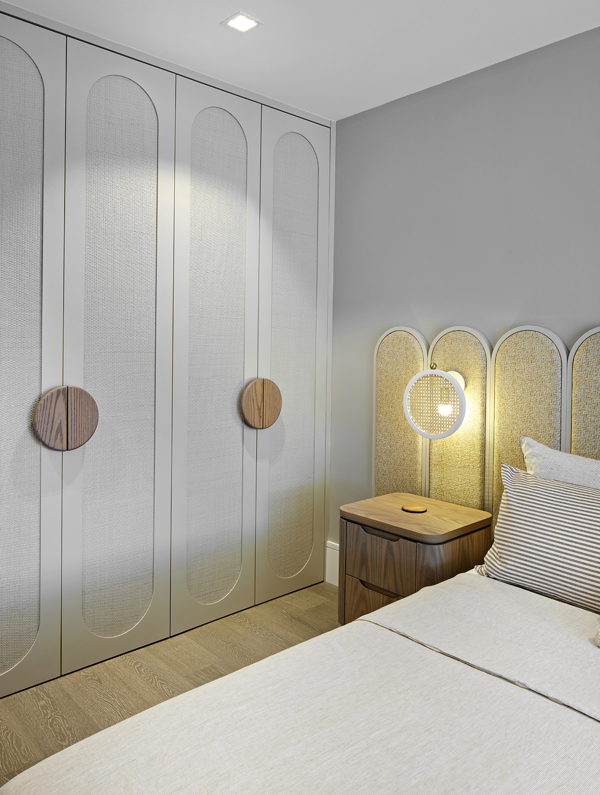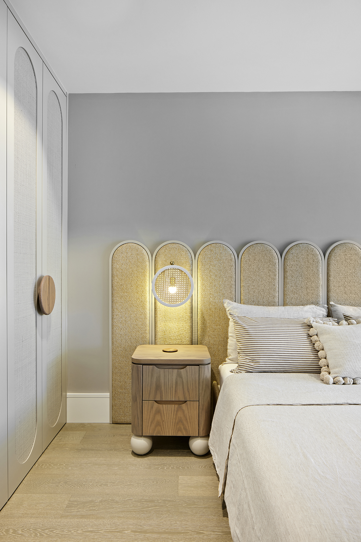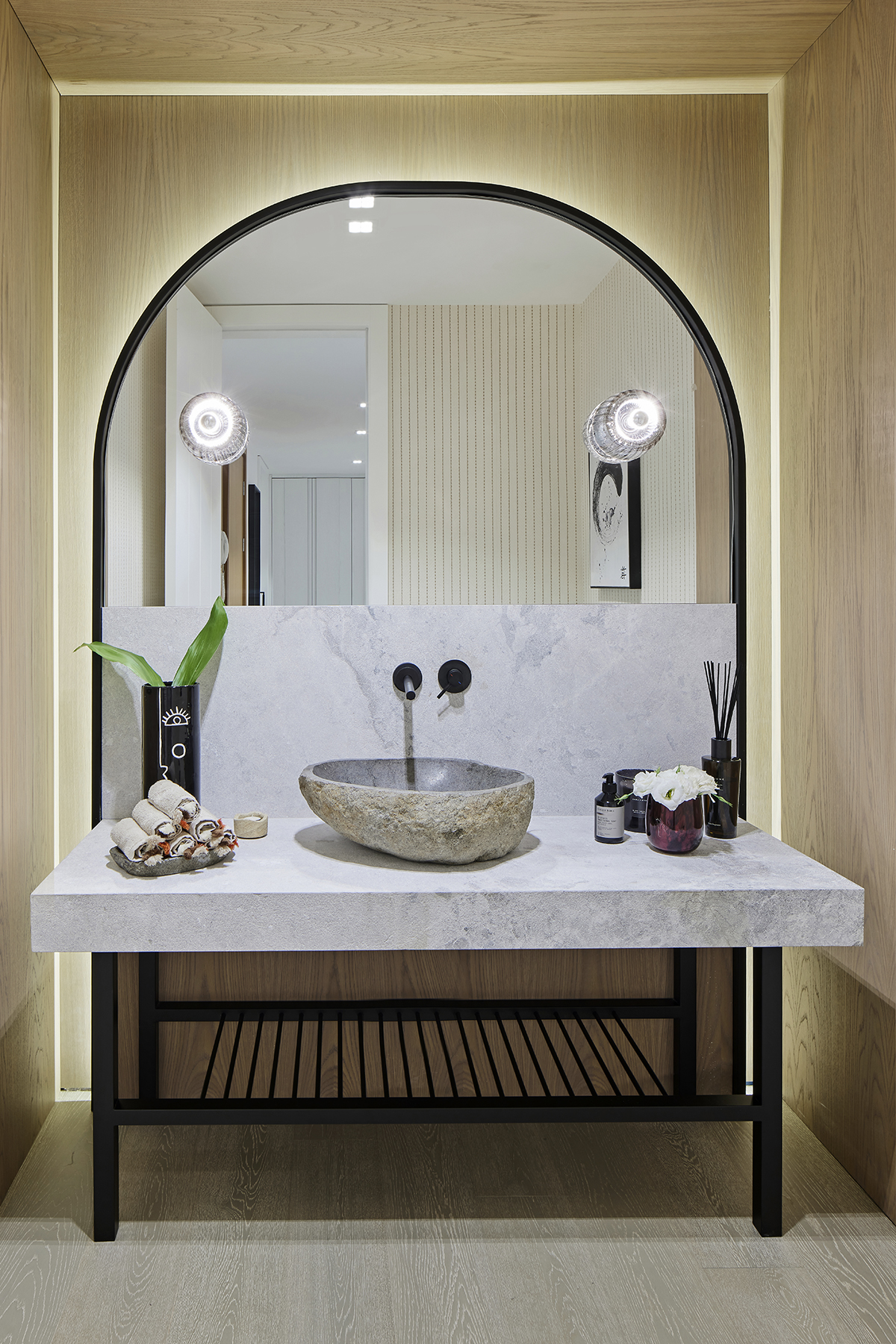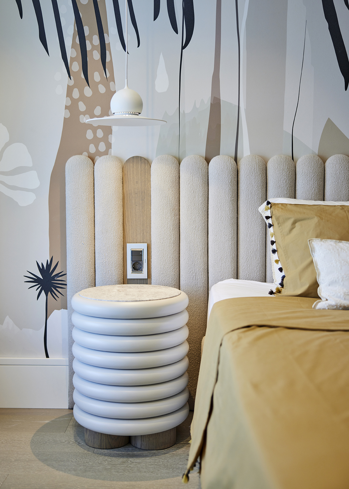 The layout includes a generous entrance hall, an open-plan living area with kitchen, a master suite with en-suite bathroom, three guest bedrooms, additional bathrooms, laundry and storage spaces, as well as a separate staff room with its own entrance.