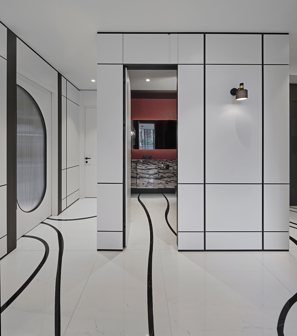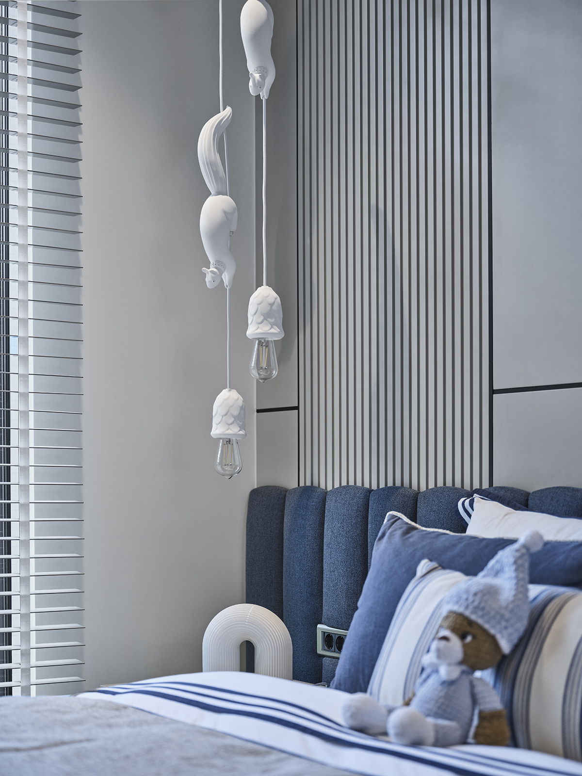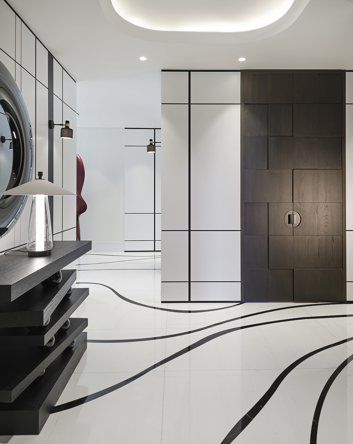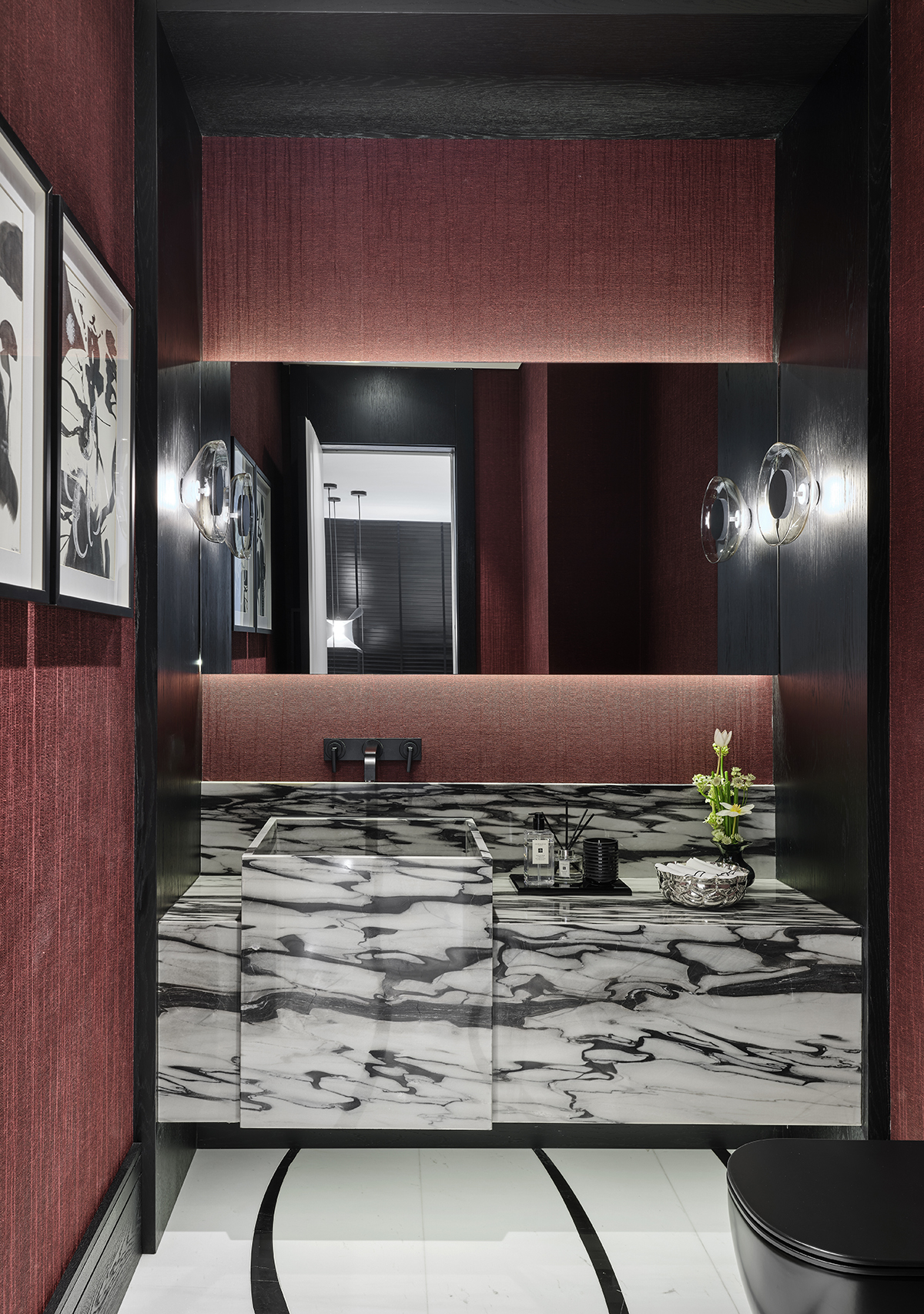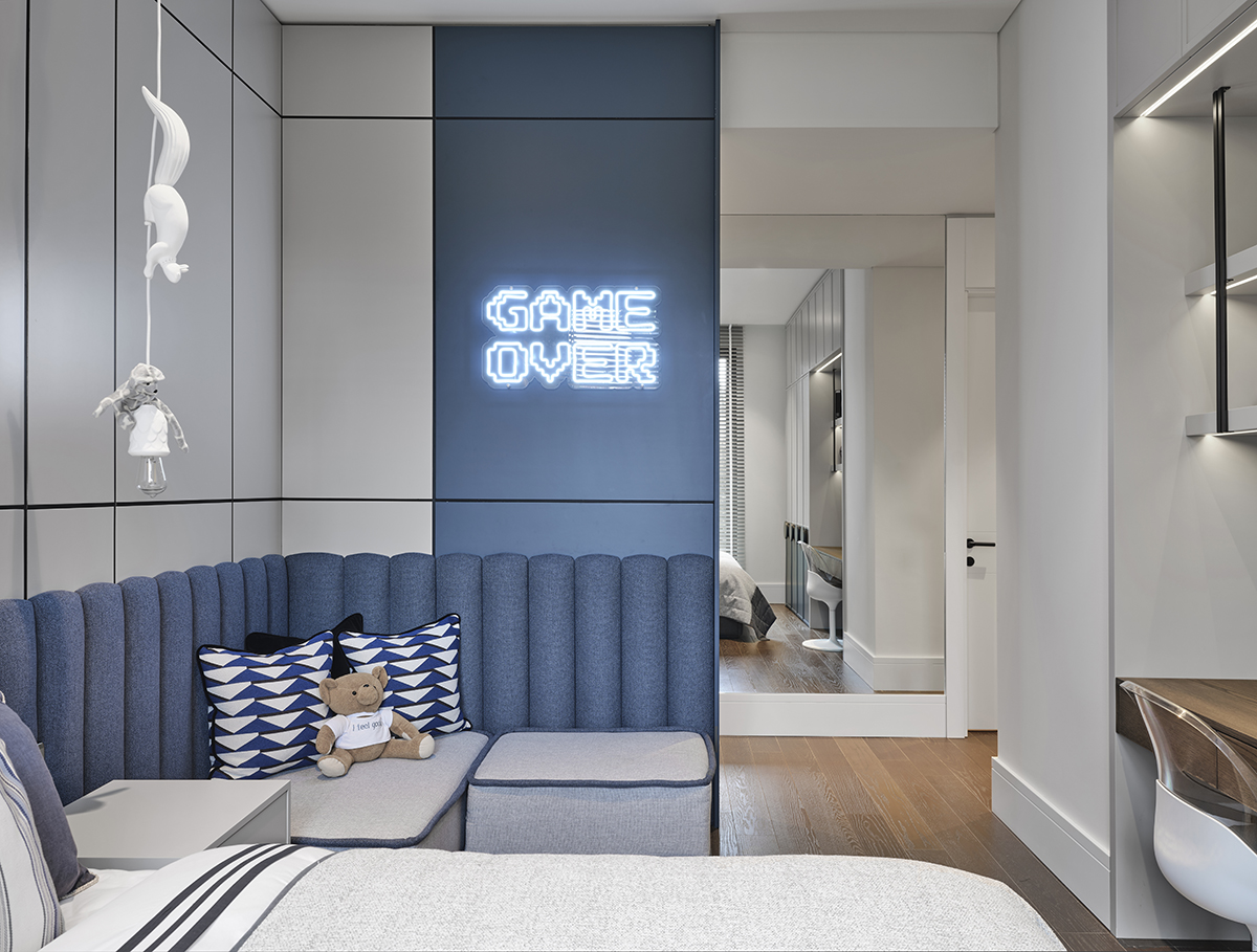 The master suite is designed as a layered space, where the sleeping area flows naturally into the dressing room and bathroom.