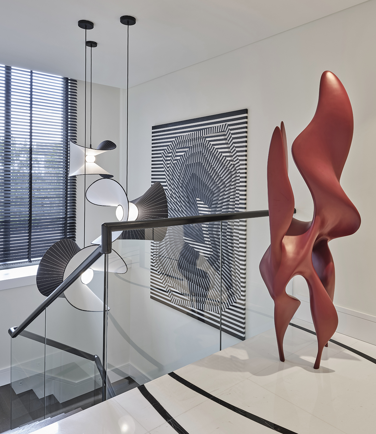 The lower level is dedicated to private use, featuring four en-suite bedrooms and a TV room.