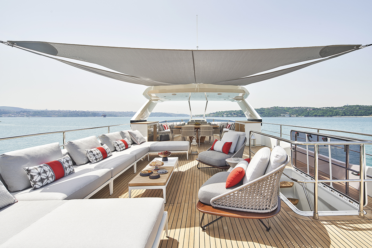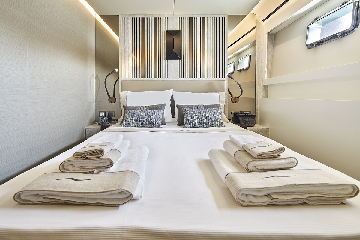 The Numarine 26XP offers two guest cabins and two crew cabins within approximately 350 square meters of thoughtfully designed living space.