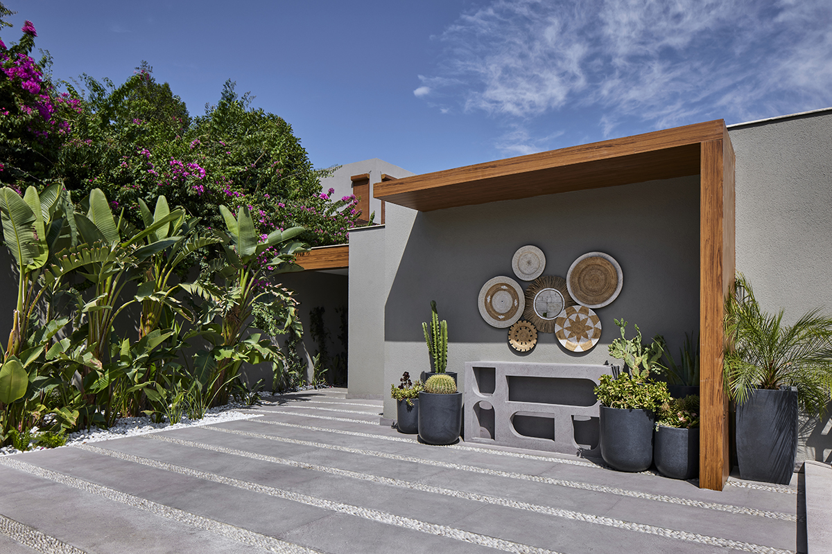 The contemporary home consists of two parts, a 245 m² main residence on the upper level and a 55 m² guesthouse accessed from the pool terrace below.